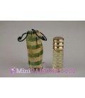 Flacon verre transparent découpe rectangulaire - étiquette papier rectangulaire verte