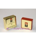 Boitier plastique carrée marron dessus étiquette dorée siglé